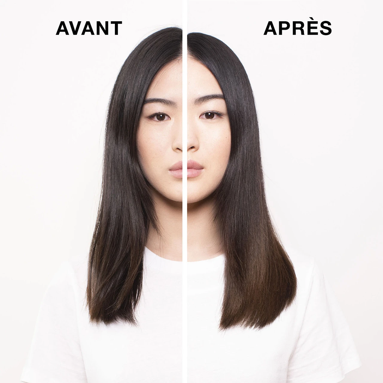 Une pression dans la main, étaler et appliquez de mi-longueur a l’extémité des cheveux.
